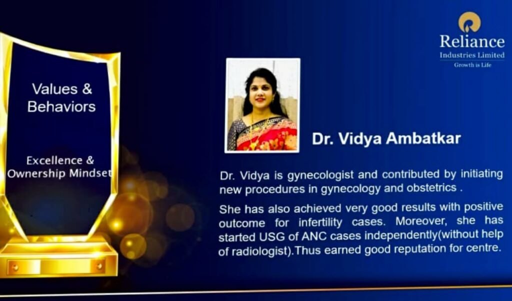 Awarded Medical Services Employee Excellence Award – 2021 by Reliance